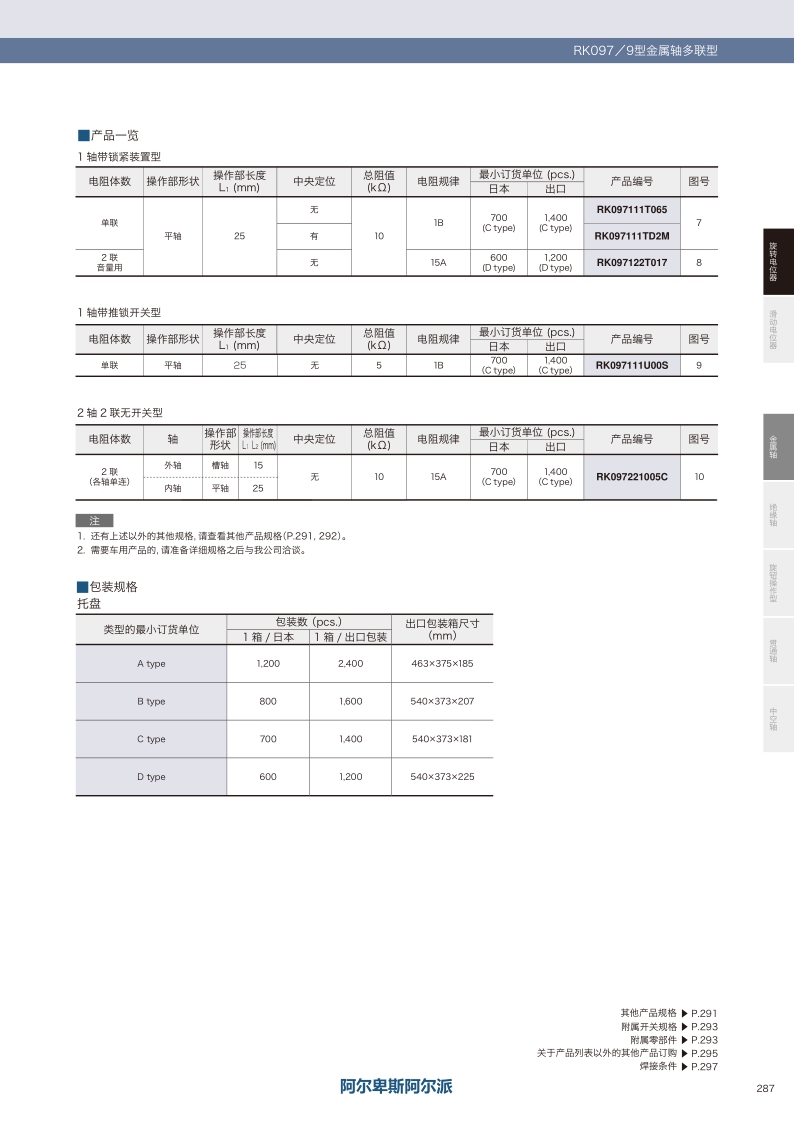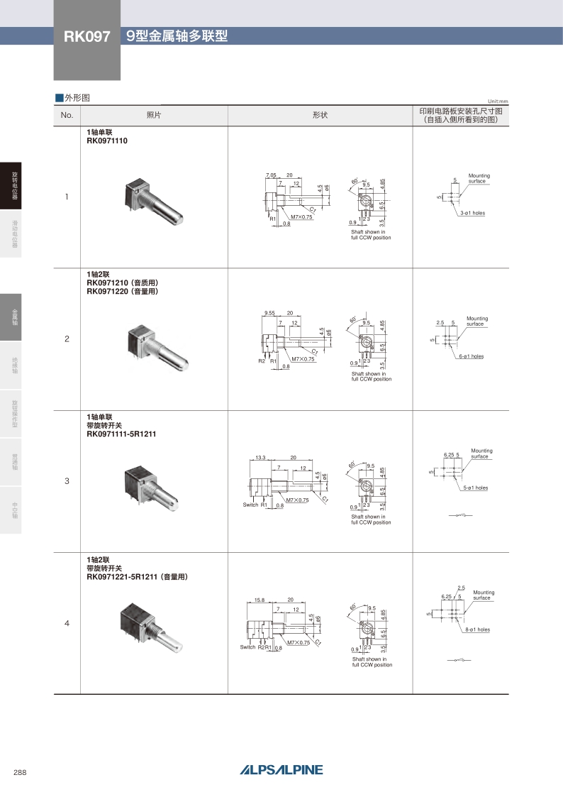 RK097系列——ALPS金屬軸電位器
