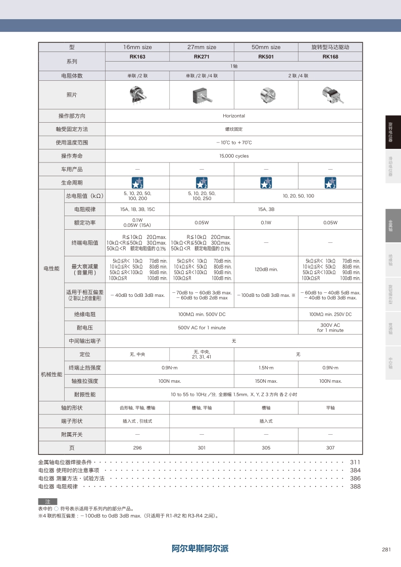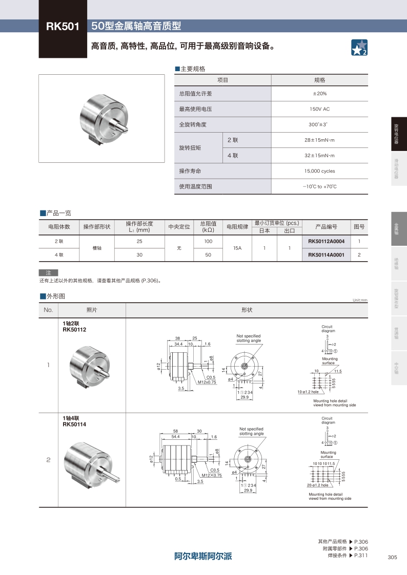 RK501系列——ALPS金屬軸電位器