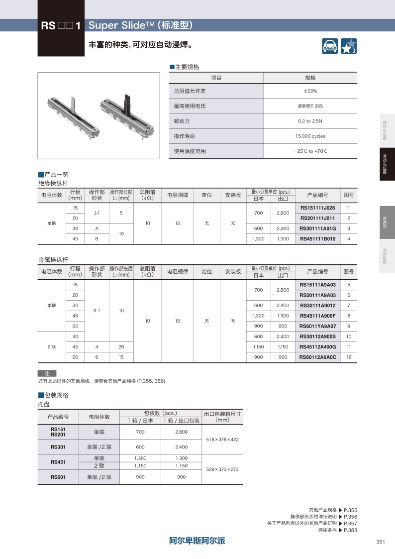 RS201系列——ALPS滑動電位器