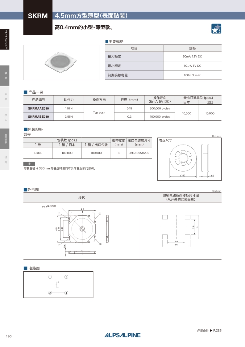 SKRM系列——ALPS輕觸開(kāi)關(guān)