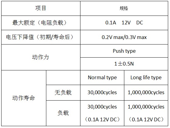 ●通過(guò)采用獨(dú)特的卡夾型兩面滑動(dòng)接點(diǎn)結(jié)構(gòu),實(shí)現(xiàn)了更高的接點(diǎn)可靠性的同時(shí),也實(shí)現(xiàn)了在微小電流領(lǐng)域內(nèi)的最佳化可用性。●移動(dòng)總量為3mm。